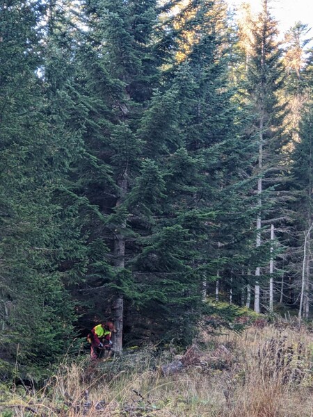 Mit dem Taxi ging es ins Gainfeld nach Bischofshofen. Hoch oben zeigte uns Herr Kellner die Tanne, die gefällt werden sollte.